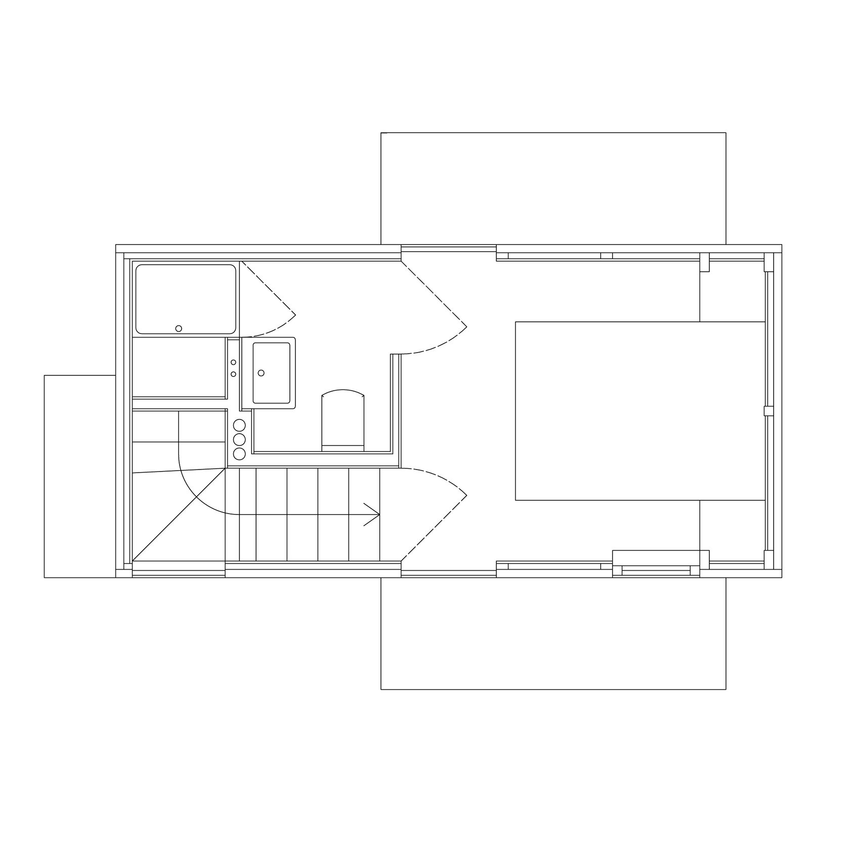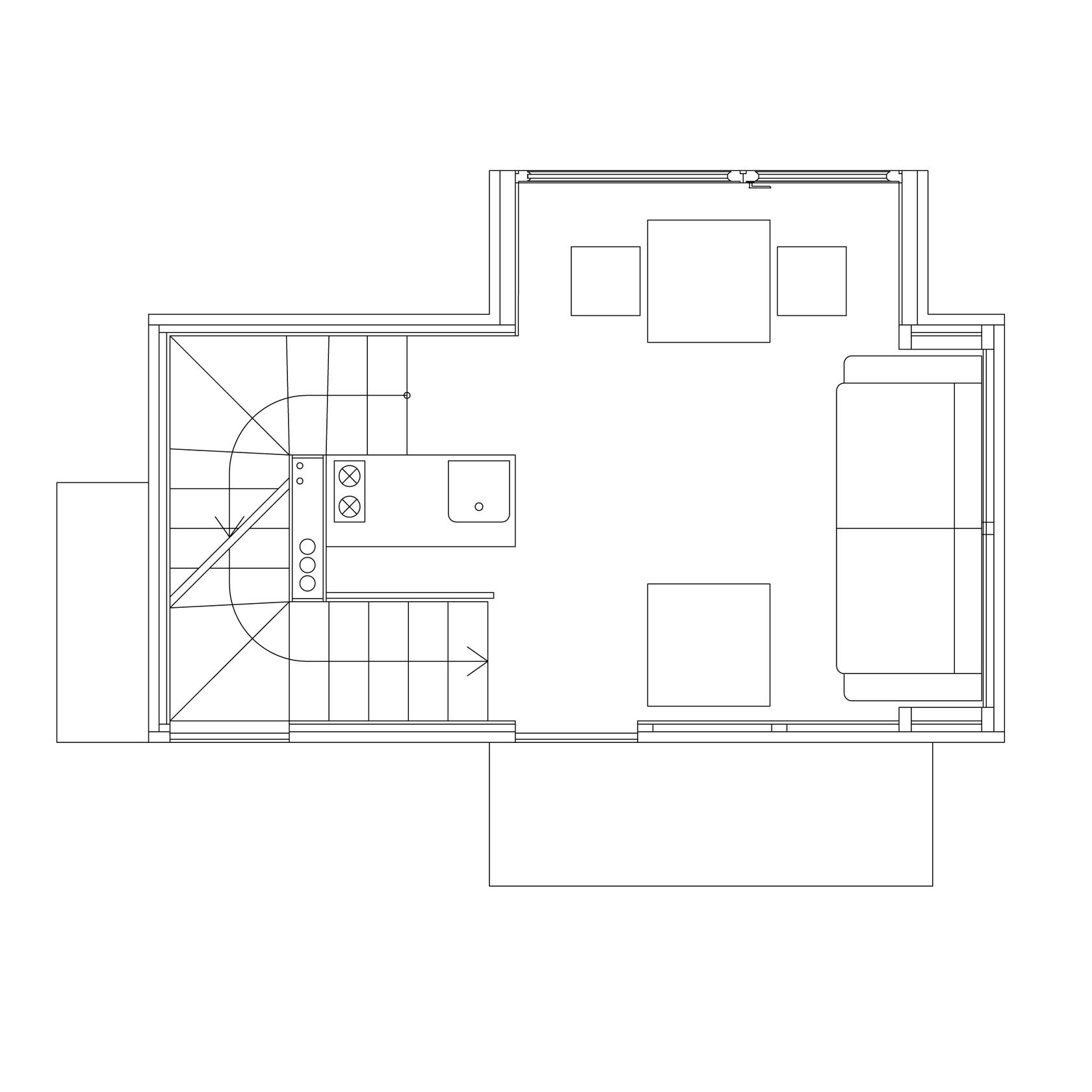 Использование дома предполагает проживание до 4‑х человек, в случае использования его как гостиничного номера в курортных зонах. На первом этаже размещаются два спальных места.