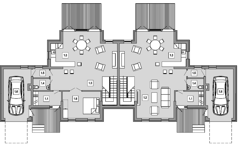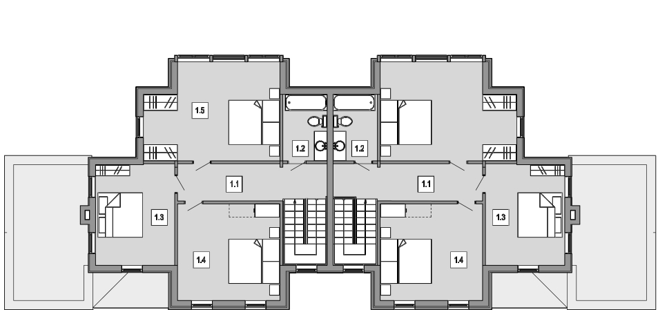 Проект Таунхауса на 6 квартир общей площадью застройки 710м2 Экспликация помещений: