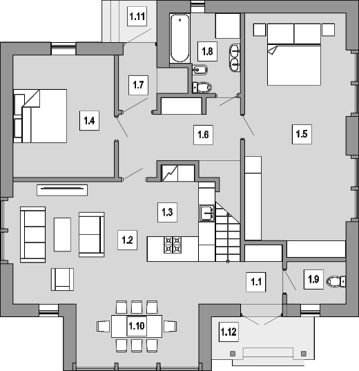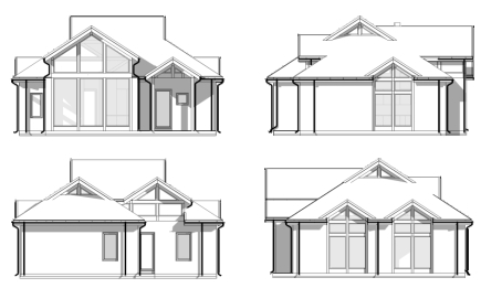 Разработанная база конструктивных решений, которая позволяет в короткие сроки создавать проекты жилых домов с заданными индивидуальными стилистическими характеристиками.