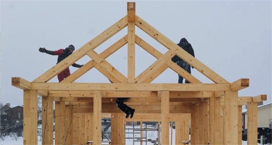 Дома выполнены по фахверковой технологии Совместное иcпользование клееного бруса и стеновых панелей Стеновые конструкции из полноразмерных керамических панелей
